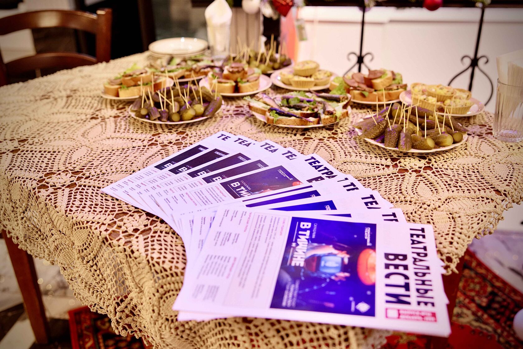 И, конечно, по сложившейся доброй традиции команда Покровка. Театр подготовила для гостей премьеры приветственные тематические угощения и напитки, а в качестве памятного подарка — газету «Театральные вести», номер за декабрь 1991-го года, который является годом основания «Покровка.Театр» и первой постановки спектакля «В тишине». Внутри газеты — реальные факты из жизни москвичей перед новым 1992-м годом, но главное — уникальные архивные фотографии репетиций спектакля «В тишине» 1991 года.