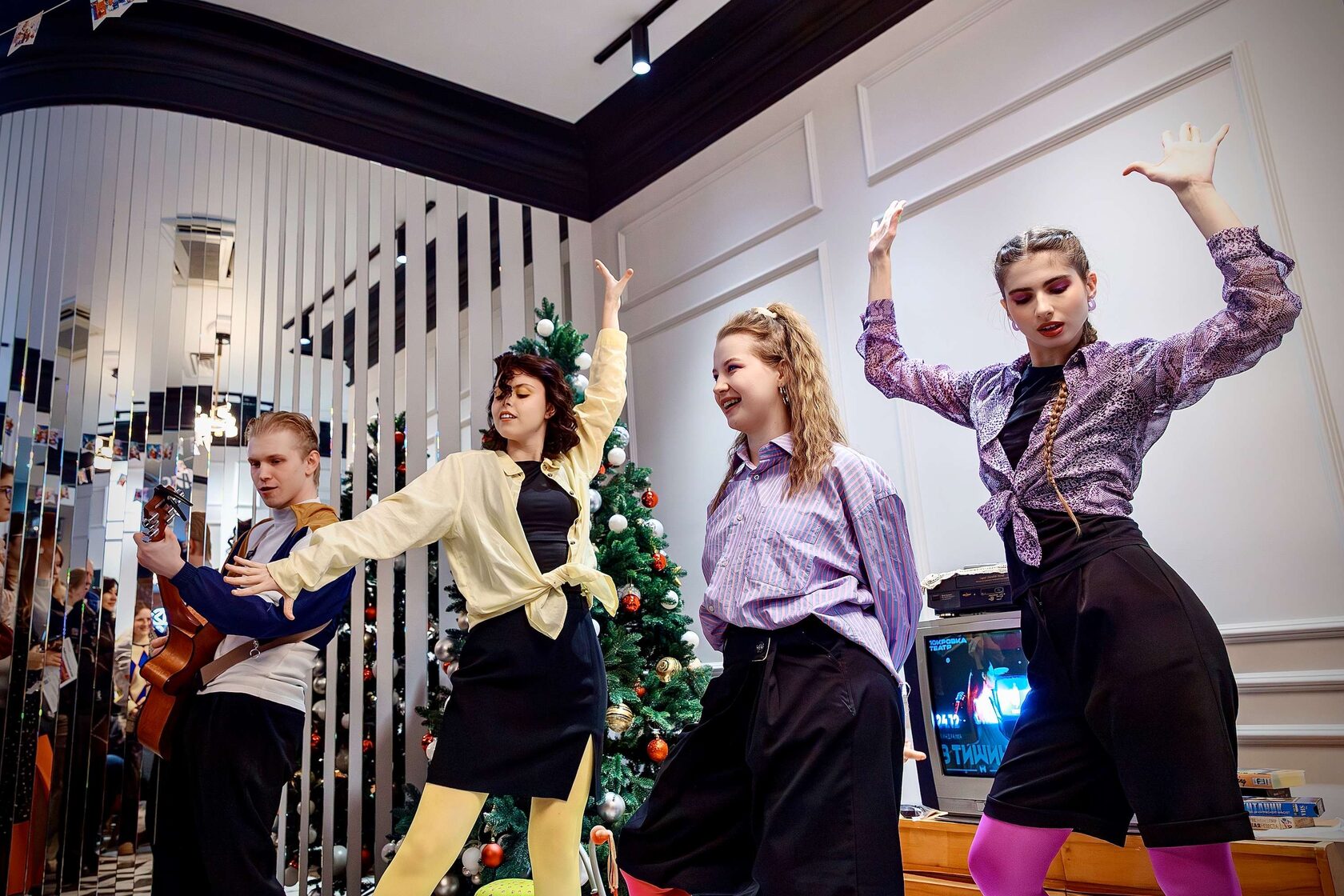 Перед премьерой в фойе театра царила новогодняя атмосфера, вдохновленная девяностыми. За музыкальное сопровождение отвечала музыкальная группа «Тюли-пули», состоящая из студентов ГИТИСа кафедры саунд-драмы мастерской Владимира Панкова.